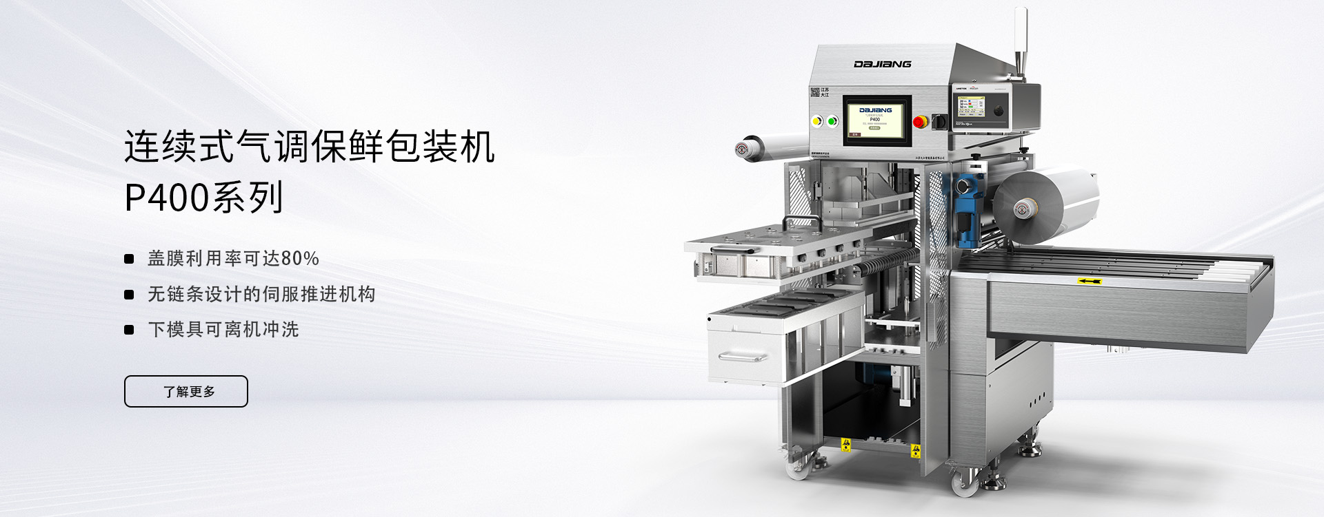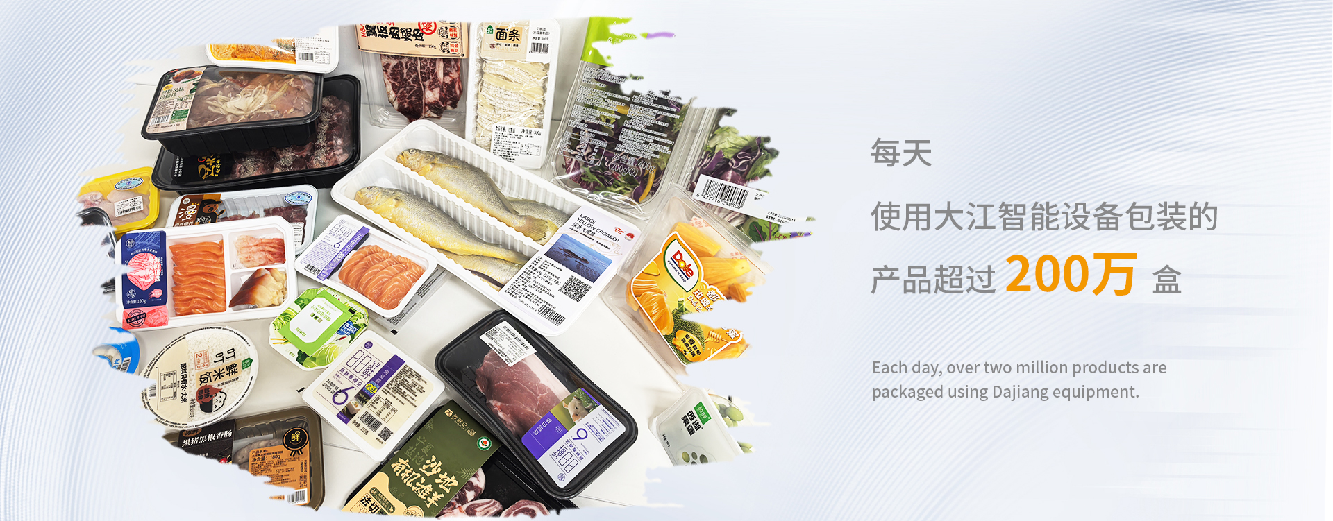 随着新零售业的蓬勃发展,食品企业对保鲜包装的需求量也在不断的提高,江苏大江的技术团队给客户提供从生产工艺设计到设备选型、自动化系统集成及应用技术的服`务。近年来,我们给盒马鲜生、叮咚买菜、朴朴超市、永辉超市、生鲜传奇等大型新零售平台提供了全方位的服务,同时也给中粮集团、牧原股份、新希望集团、正大集团等大型食品企业提供了自动化、智能化、信息化的保鲜包装生产线。